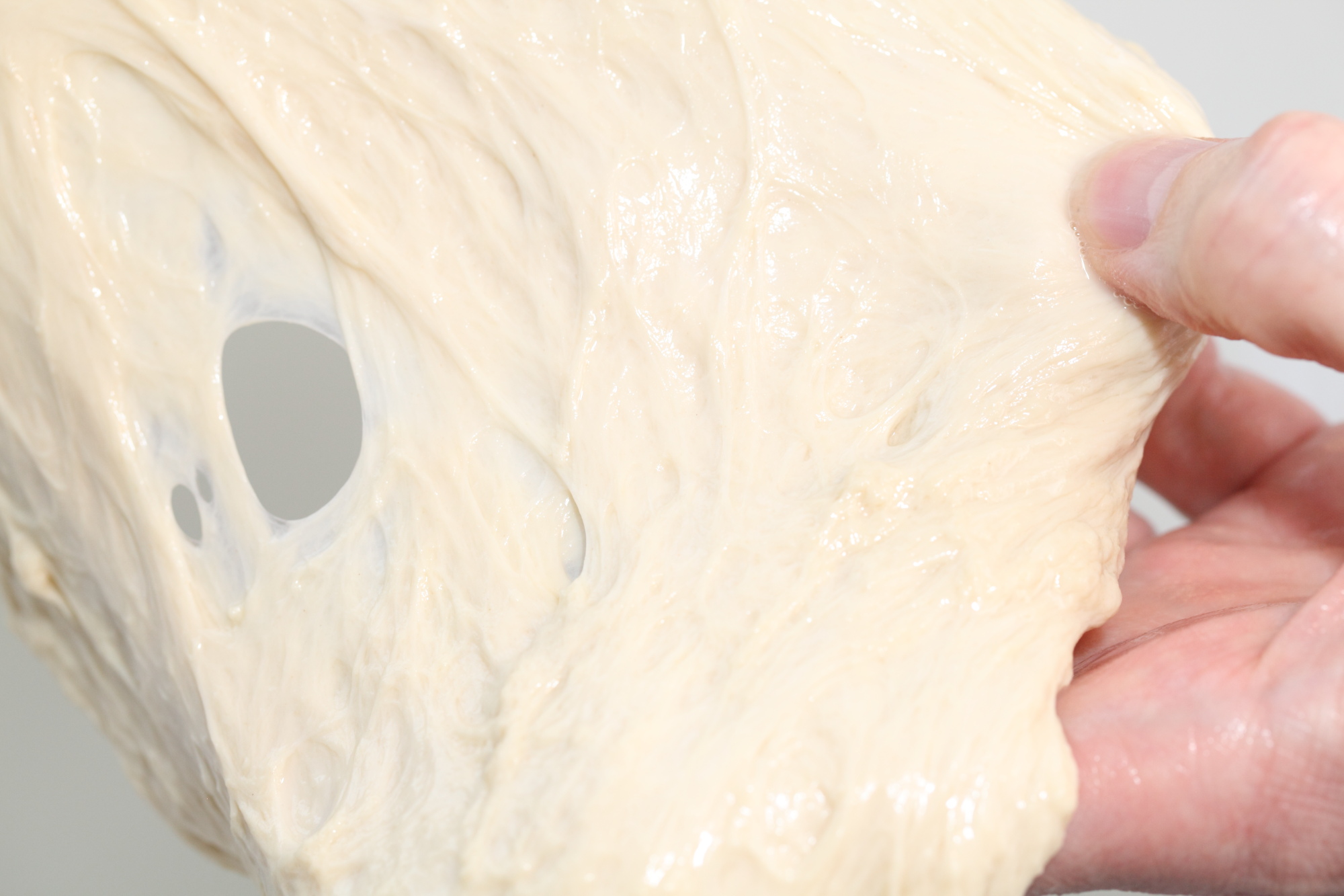 Gluten zijn de belangrijkste structuurbouwers in je brood, ze houden lucht vast en geven je brood een veerkrachtige en elastische textuur. Wanneer je je bloem en water tot een deeg kneedt, verbinden de natte gluten zich met elkaar en vormen ze een web. Hoe langer je kneedt, hoe meer schakels er worden gevormd en hoe ‘sterker’ je deeg wordt. Deze schakels worden ook automatisch gevormd wanneer nat deeg een tijdje met rust wordt gelaten (het autolyse-proces) en tijdens bulkfermentatie. Daarom wordt je deeg (het glutennetwerk) tijdens deze stappen ook sterker. Het kooldioxidegas dat door gist wordt geproduceerd, zit gevangen in dit web van gluten, een beetje zoals lucht in ballonnen. Dit zorgt ervoor dat je deeg gaat rijzen. Naast kneden en tijd worden gluten ook ontwikkeld en beïnvloed door de hoeveelheid water, waterkwaliteit, temperatuur en de toevoeging van andere ingrediënten (zout, melk, vetten) en chemicaliën/additieven (enzymen, conditioners) in een recept.