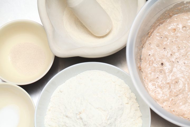 Due to the properties of vitamin C, it can be used as a dough (gluten) strengthener during fermentation, helping to improve the structure of the dough.Some flour types are sold with added vitamin C. The regular wheat and bread flour we use does not contain any vitamin C. So adding a tiny pinch to your dough can help improve your baking result. Professional bakers can buy ‘commercial grade’ ascorbic acid, but home bakers can also use crushed vitamin C tablets (it’s effectively the same stuff). The recommended amount is 0.07%. So this means that for this recipe, with 500 g of flour, you can use a vitamin C tablet and grind it to a powder. Take a pinch of the powder and it will probably be close to the amount of 30 to 40 mg needed. Weighing will not be an option for most home bakers, with these small amounts.