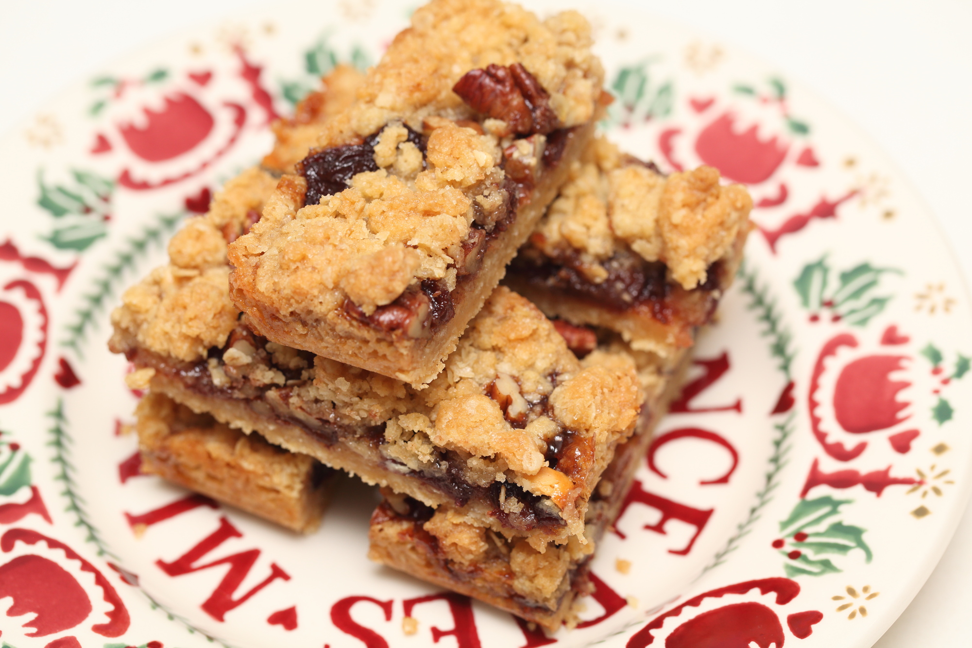 Veel van de bij ons bekende snoepers zijn dol op deze feestelijke versie van de crumble bar. Super eenvoudig te maken en heerlijk chewy, kruimelig en knapperig tegelijk. De combinatie van de specerijen in de mincemeat, de noten en toegevoegde zoetheid van de witte chocolade is één van mijn persoonlijke favorieten.