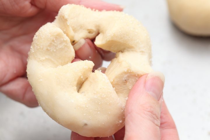 - Turn the disc inside out to form a star shape. Repeat this with the other dough discs