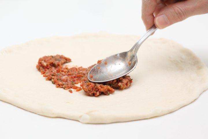 For this recipe we also use our 24 hour pizza dough as a base, but make 6 lahmacun with this amount of dough instead of 4 pizza’s and roll and bake it slightly different.
