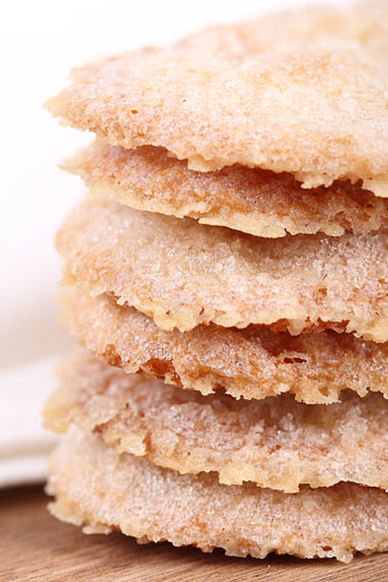 I was very intrigued by this cookie recipe. Tomorrow we are having a coffee for senior citizens of my Dutch community. I didn’t know what to expect from this recipe, but I think I’m going to add it to my repertoire. Seems the secret is to be consistent with your cookie dough, ball size and be consistent with your rolling. I do not have the coarse sugar, but I took some of my decorating sugar (red) and sprinkled it into the sugar I was using as I rolled out the cookies. Gave it a nice speckled look. I was able to improve my technique as I moved through the batch. I wasn’t expecting the caramelized Bottom, and I love the lace edges on the cookie. I dropped my baking time to 15 minutes as my cookies were very thin. Not sure what is ideal but I hope things go well.