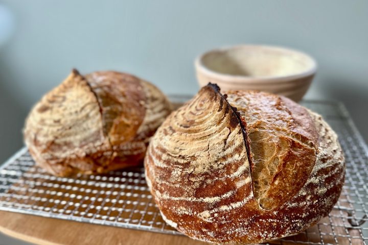 We maken al heel lang met veel plezier no-knead zuurdesembroden in allerlei variaties. We wilden een eenvoudige versie toevoegen, zodat je weekendopties hebt voor een versgebakken brood op zaterdag- of zondagochtend. Geen mixer of kneder nodig, alleen een ruime kom en je handen!