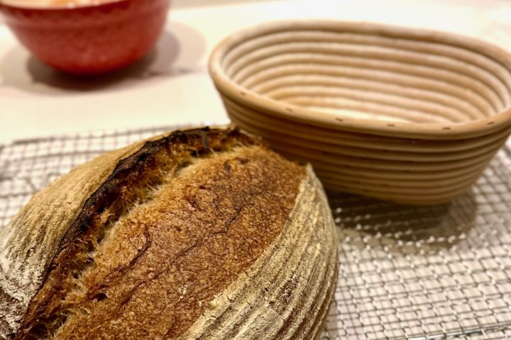 Wij gebruiken onder andere het ‘ovaal ronde’ rijsmandje met een maat van 22 x 14 cm voor dit recept. Naar officiële specificaties zijn deze mandje geschikt voor 500 tot 750 gram deeg, maar met de ruim 900 gram deeg van dit recept weet dit mandje ook prima raad. Als het deeg wat boven een mandje uitsteekt na de laatste rijs, dan is dat geen probleem.