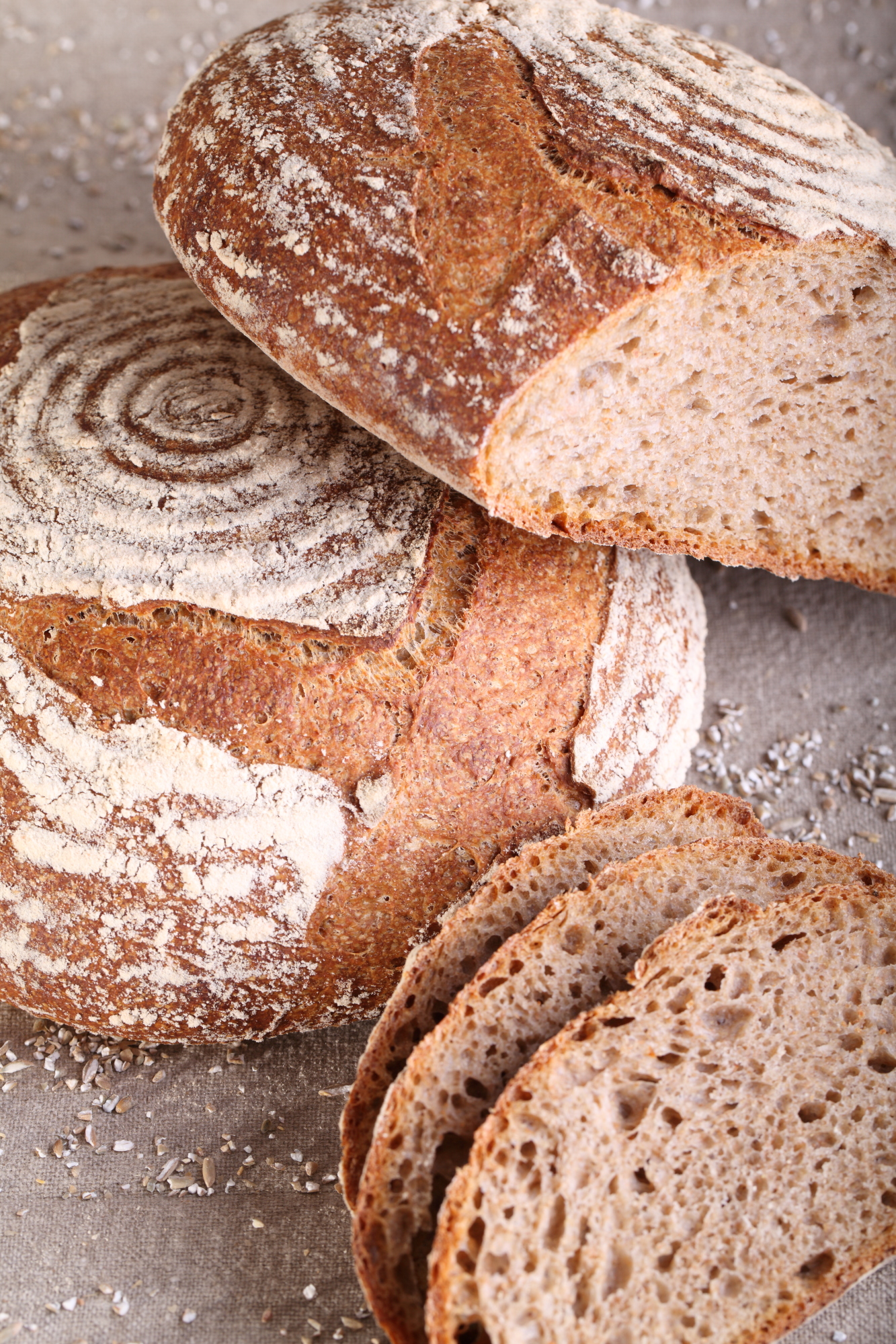 We use a sourdough culture which is made with 100% whole grain rye flour. A sourdough culture based on rye flour is easier to maintain, does not go into a slurry when you forget about it, is easier to stir because it has almost no gluten and smells very nice, a bit like fruit. It is also very forgiving in the amount you feed it, everything seems to be alright. Normally we only feed it once a week, after our weekend baking we give it a few table spoons of water and rye flour, stir, ready!