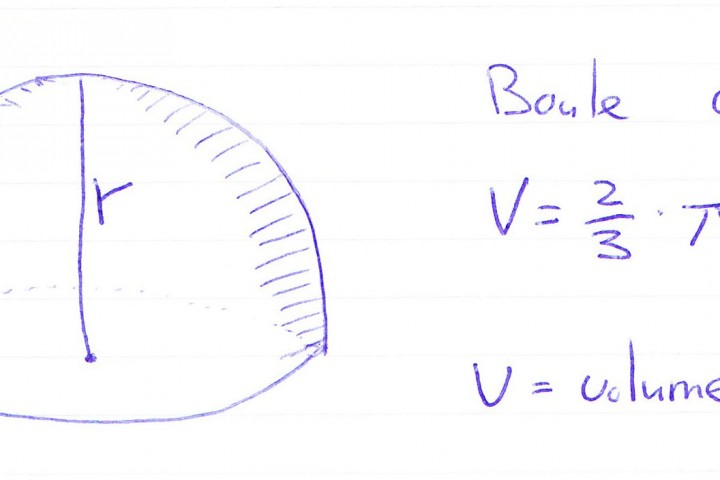 If we simplify the shape of a dough boule to the geometrical shape of a halved sphere (Wikipedia Sphere) we can calculate the volume of the boule; the formula to calculate the volume of a halved sphere reads;