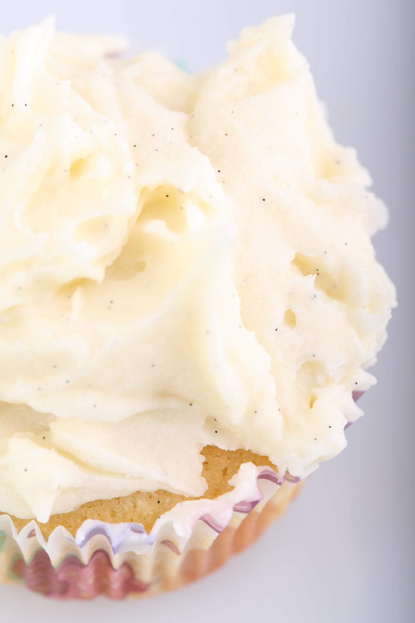 Out of all the cupcakes variations you can make, the vanilla ones firmly stay everyone’s favorite. I quite like slapping on the frosting instead of piping it on with a piping bag. It sort of looks like a rustic iceberg that way. And it also saves time! I do not like to use artificial food coloring. I love natures colors and it makes me happy to use things like macha green tea to get a beautiful pastel green frosting if I feel like it. Same goes for the flavoring: only natural vanilla for these true vanilla cupcakes! I also use some lemon and orange zest in the cake batter so the vanilla has something tangy to play with. I also use less butter (but always from a fresh packet) in my frosting than a lot of recipes I’ve seen. Try it! I get quite a lot of compliments for my frosting…