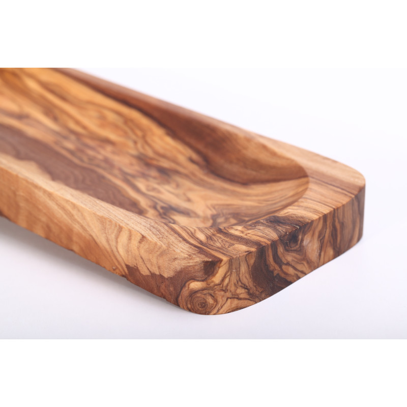 All olive wood products are unique in design and design, because every olive tree is different. Manual finishing. Olive wood grows slowly and has fine annual rings, which also gives this plank strength and weight.