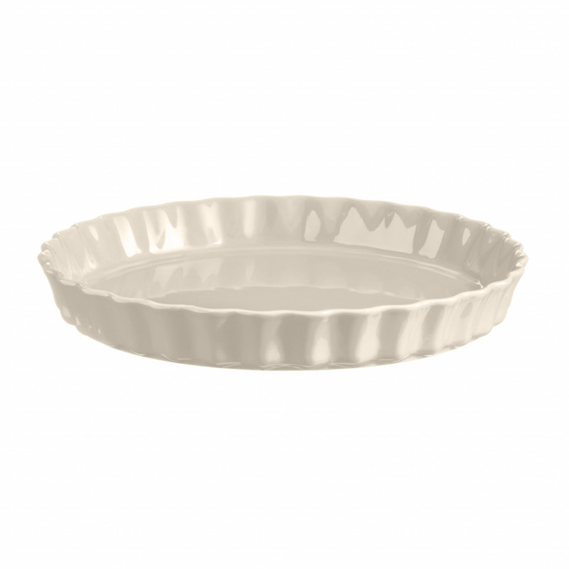 This Emile Henry tart and pie dish with a high rim is crafted from beautiful cream-colored glazed ceramic. Make your favorite sweet or savory pie and present it in this dish.