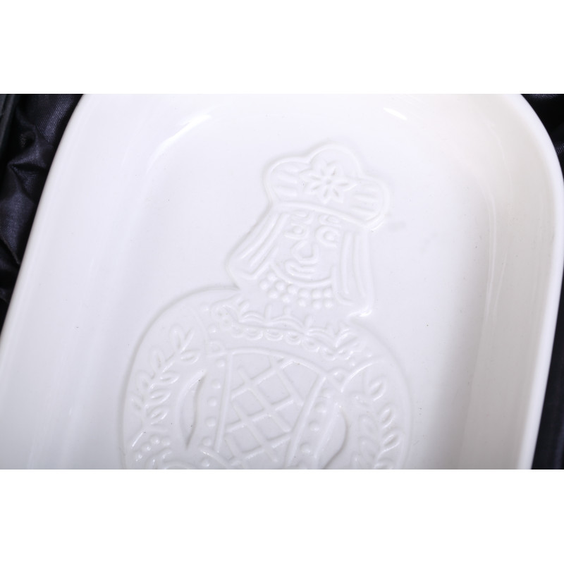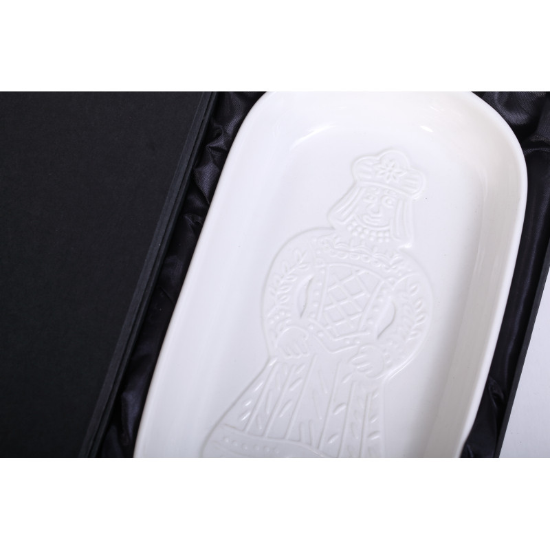 Made of glossy porcelain with a matte image of a gingerbread / speculaas dol in relief. Beautiful quality porcelain.