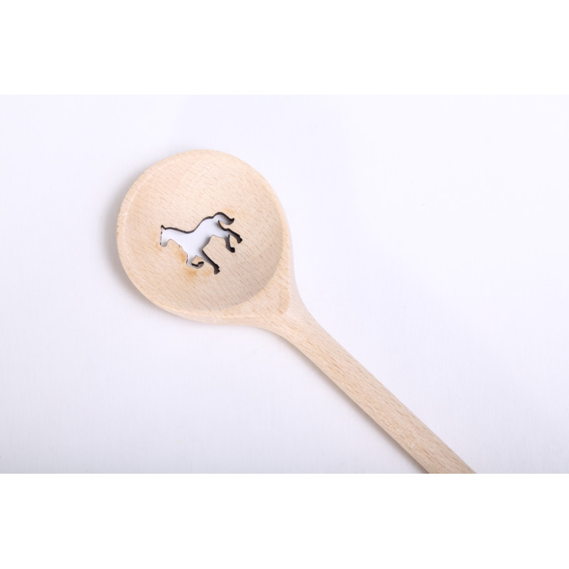 This round wooden spoon has a laser cut hole in the shape of a Horse. Maybe a special gift for a collector or someone who could eat like a...