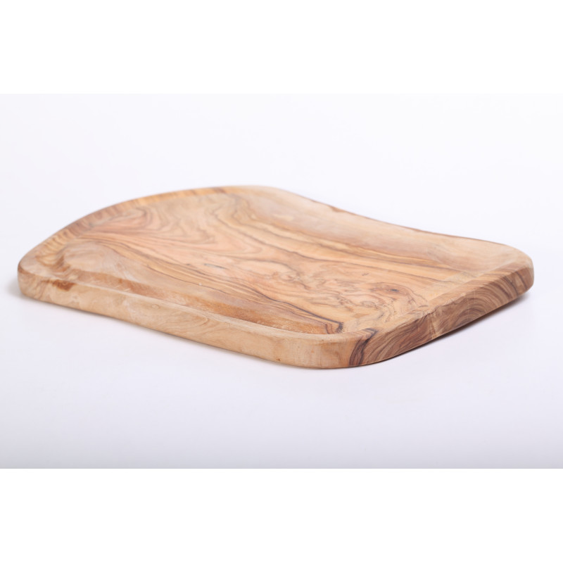 This serving & carving board with groove and small recess is of beautiful European olive wood.