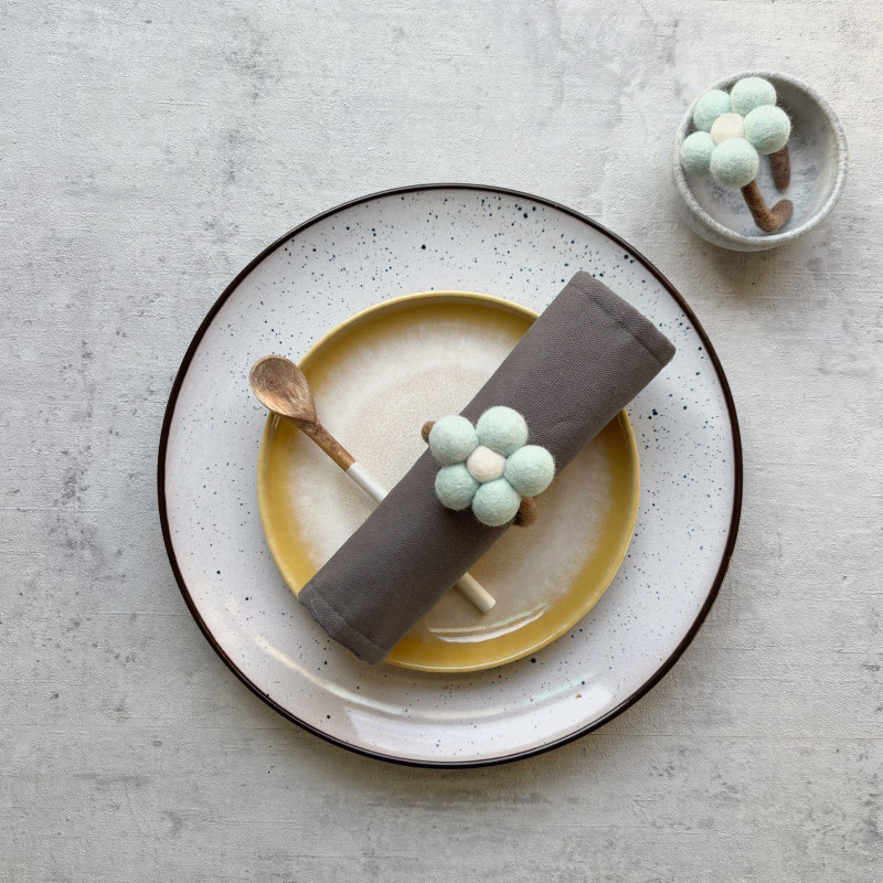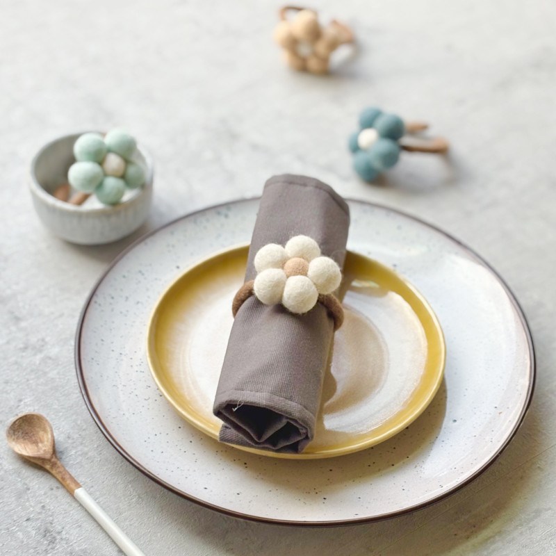 Prachtige kwaliteit handgemaakte servetringen van wolvilt van Beyoona.