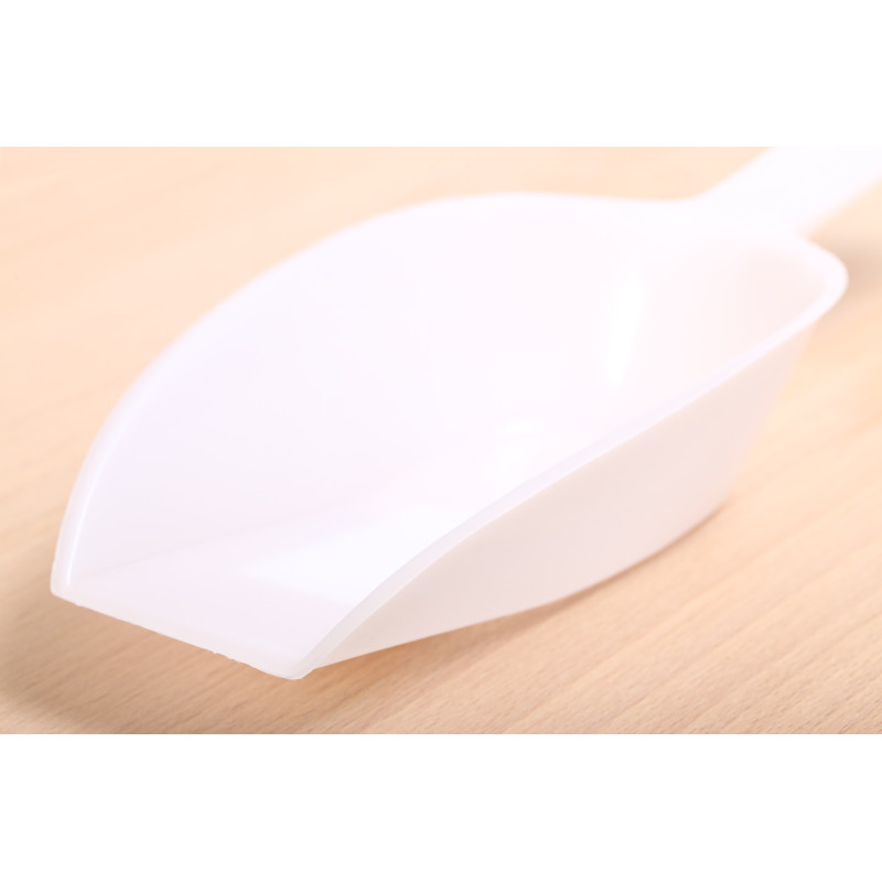 Geen 'thing of beauty', wel heel handig. Een meelschep werkt heel wat prettiger dan een grote lepel om je meel af te wegen vanuit je zak of voorraaddoos. Wij kunnen niet meer zonder onze meelscheppen. Deze schep heeft een inhoud van ruim 100 milliliter en is gemaakt van voedselveilig kunststof (PE).