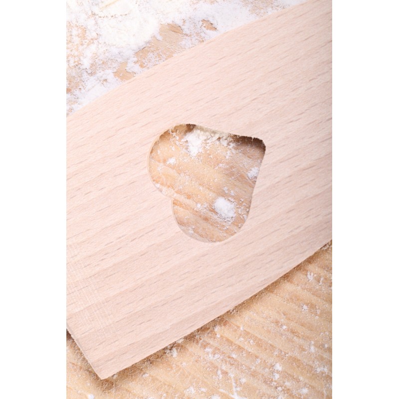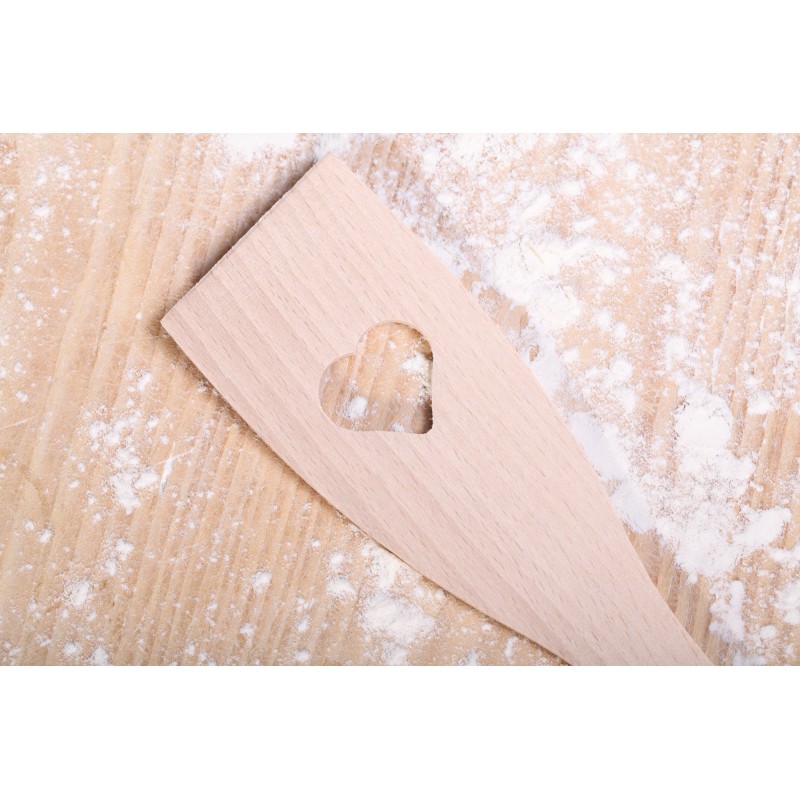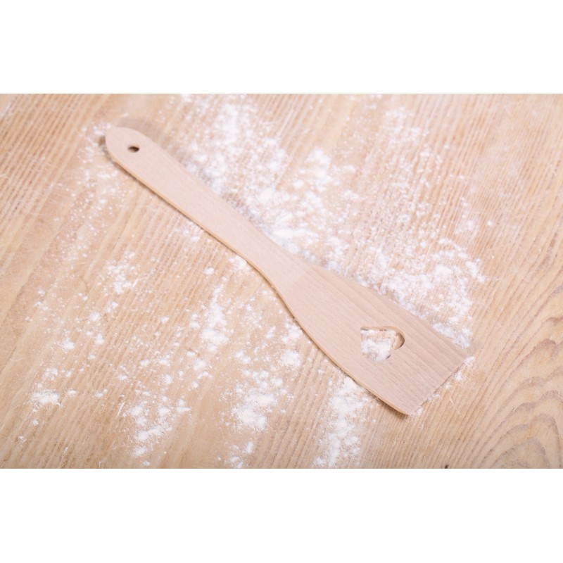 Deze roerspatel met hartvormige uitsparing vormt een passend onderdeel van een liefdevol bakcadeau bijvoorbeeld. Gemaakt van Europees beuken.