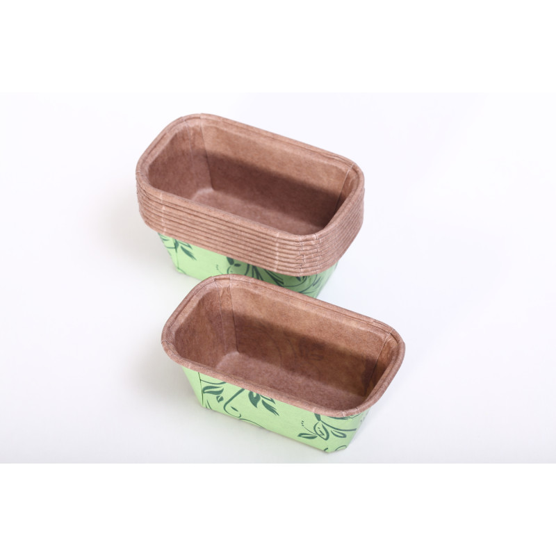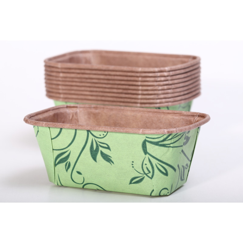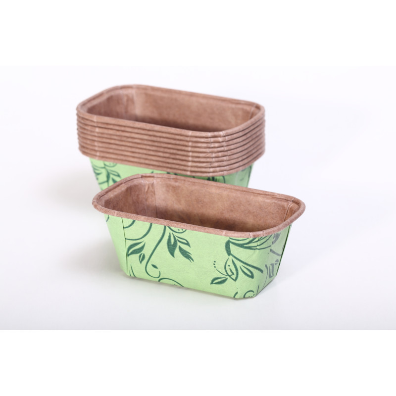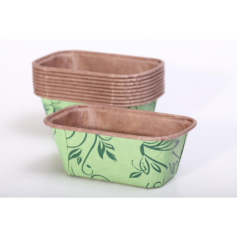 Schattige mini (1-persoons) uitvoering van de Italiaanse papieren eko cake-vorm in groene kleur met sierlijke blaadjes-decoratie. Een mooi bakresultaat en de perfecte presentatie in één voor zowel hartige als zoete creaties. Van mini brioches tot pandan cakes, Japans melkbrood en mini jalapeno & cheese broodjes.