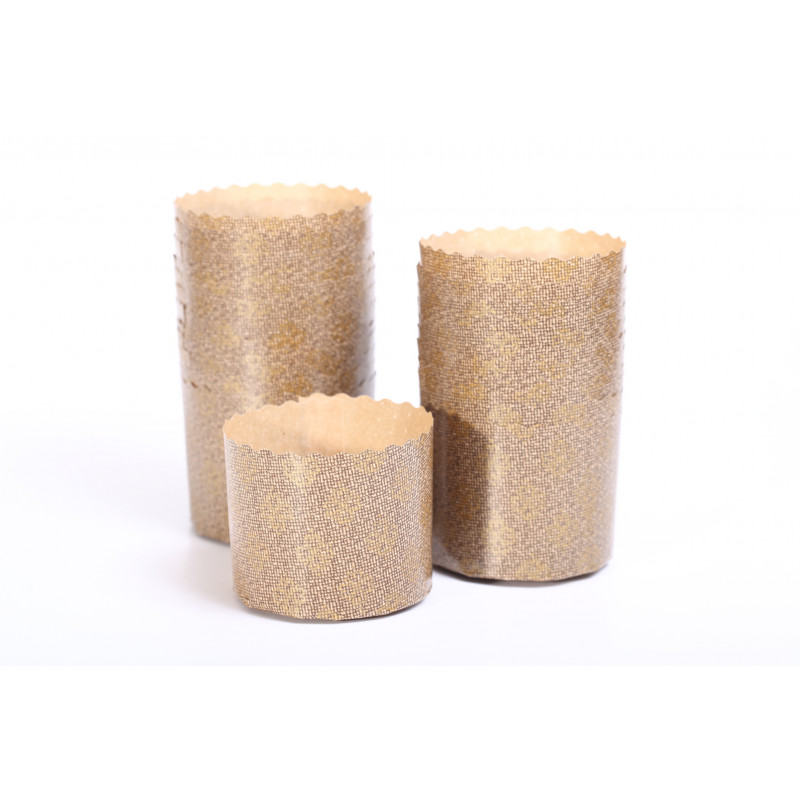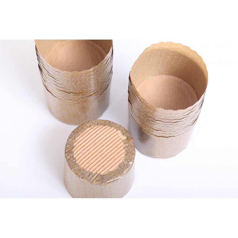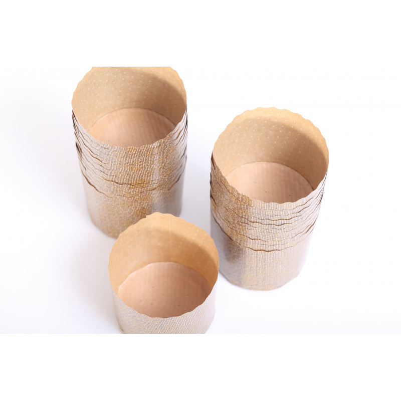 Deze Italiaanse panettone baking cups zijn zeer stevig en kunnen zelfstandig op een bakblik staan. Gemaakt van prachtig stevig papier met een doorsnede van 7 cm en een hoogte van 6 cm. Je kunt ze gebruiken voor al je muffins, cakes, brioches en mini panettone natuurlijk. Ze blijven mooi, ook na het bakken, zodat een spectaculaire presentatie verzekerd is.