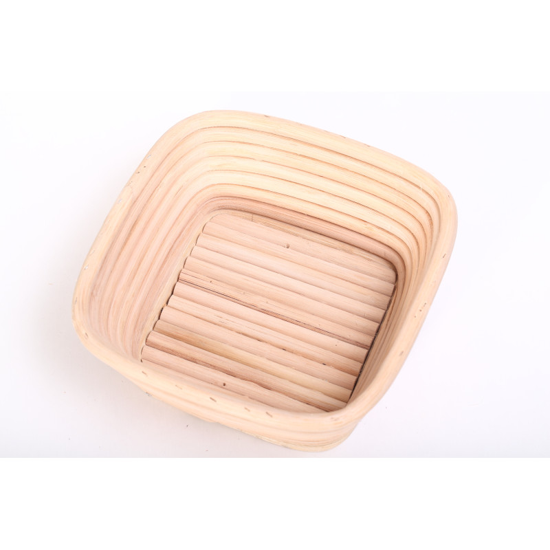 De vierkante bannetons lopen licht taps toe en zijn gemaakt van een mooie kwaliteit riet met een inhoud van 750g tot 1 kg deeg. Een rieten rijsmand geeft vorm en steun aan je brooddeeg, en natuurlijk het kenmerkende spiraalpatroon. Deze vierkante vorm past ook heel goed bij stoere roggebroden of bierbroden bijvoorbeeld.