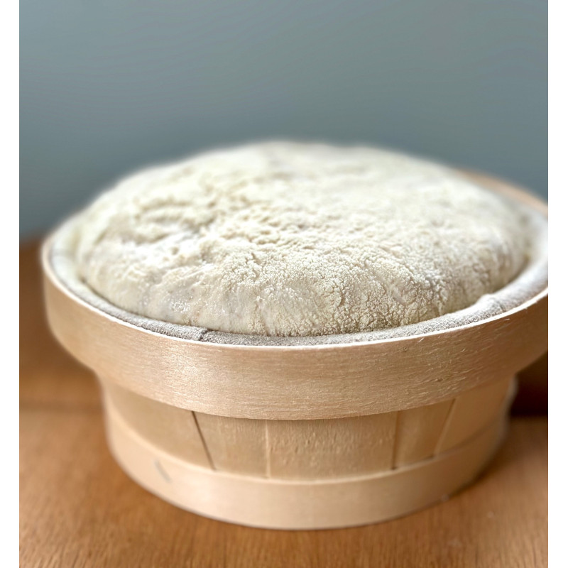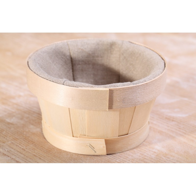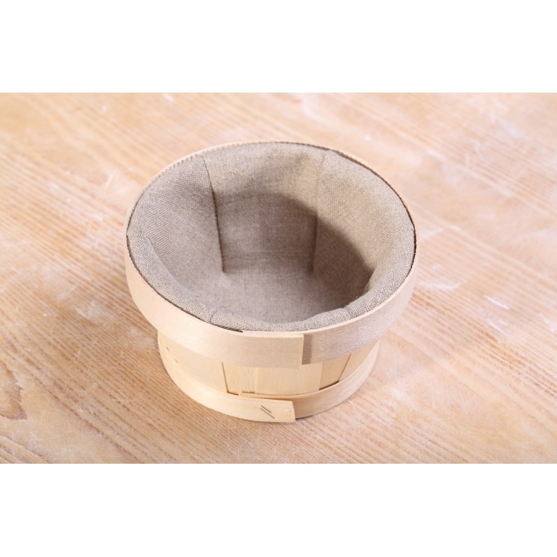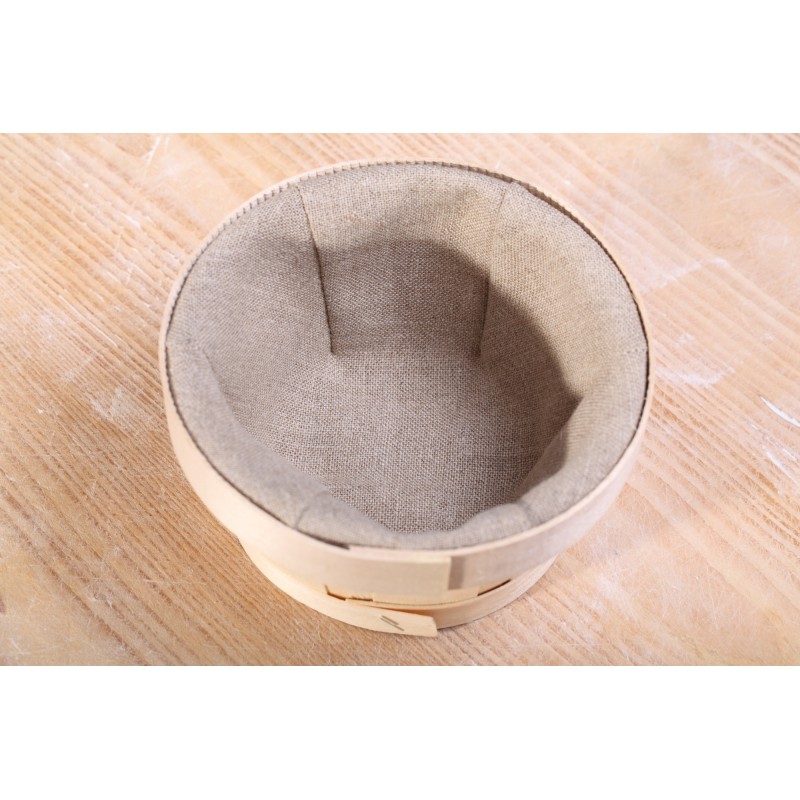 Mooi hoog en schattig rijsmandje van licht populierenhout met zware en prachtige kwaliteit linnen. Geeft vorm en steun aan je brooddeeg.