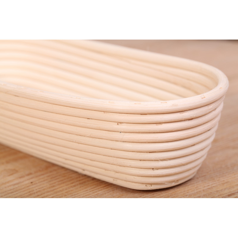 Lange ovale rijsmand van zeer goede kwaliteit riet. Geeft vorm en steun aan je brooddeeg en natuurlijk het kenmerkende spiraalpatroon. Met dit mandje kun je broden laten rijen tussen de 750 gram en 1 kg, mede afhankelijk van volume.