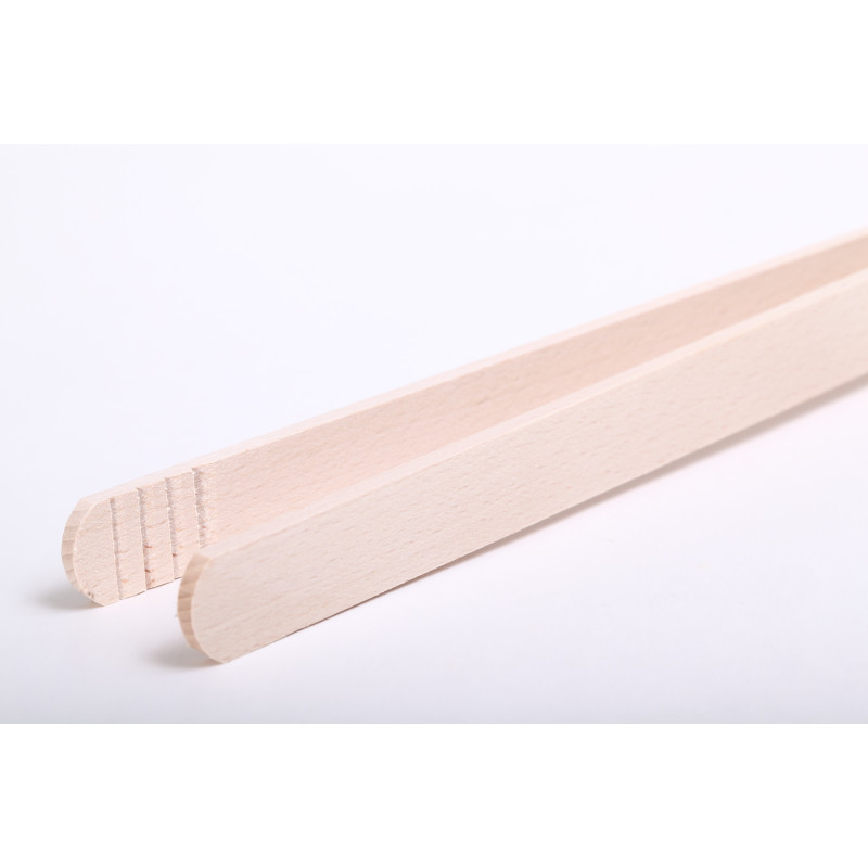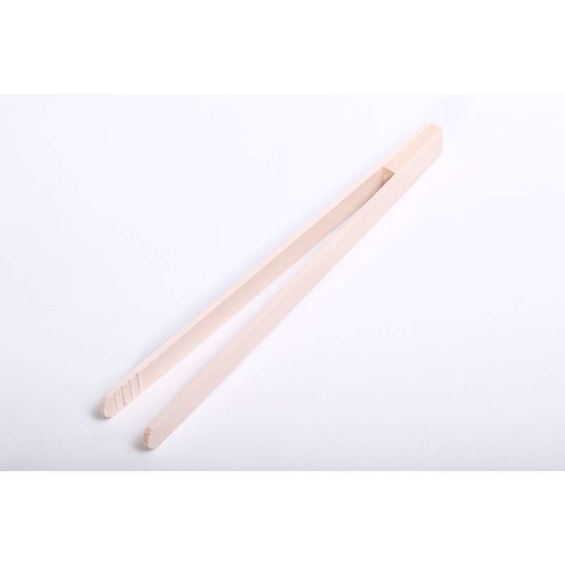 Handige tang van Europees beukenhout voor het pakken, keren en serveren van allerhande voedsel. Wij gebruiken hem bij de broodrooster en grill.