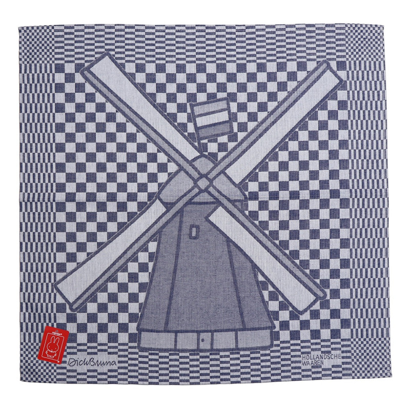 Theedoek Molen. Ontworpen door Hollandsche Waaren als hommage aan Dick Bruna, de tekenaar en auteur die we vooral van Nijntje kennen. Ook in deze molen zie je zijn kenmerkende stijl terug. Ook leuk om je deegkom af te dekken natuurlijk. Of om je pitabroodjes warm te houden.